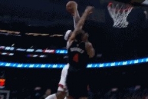 风驰电掣!博纳打申京倒地丢球 阿门反击穿越2人防守飞身扣篮