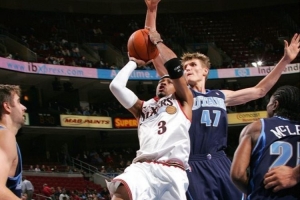 艾弗森职业生涯共出战914场比赛,场均出战高达41.1分钟,能贡献26.7分、3.7个篮板、6.2次助攻和2.2次抢断。