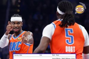 链接>>>雷霆明日战掘金 亚历山大等10人休战 仅多特&麦凯恩等8人出战