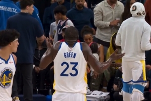 对手归对手!还是Respect!快船球迷脸色铁青推开库里 但碰拳收尾