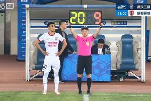 比赛第61分钟,蓉城换人调整,王子铭换下费利佩。