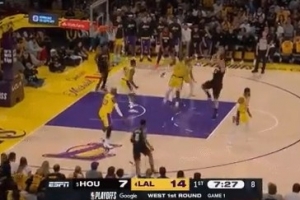 八村塁直传詹姆斯被破坏 后者示意应该击地但八村塁问“What ”