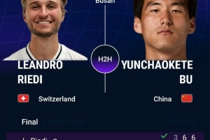 布云朝克特苦战三盘遭列迪逆转,收获ATP釜山挑战赛亚军