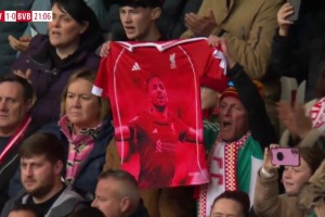 巴黎Tifo展示绿巨人撕碎利物浦队徽 利物浦球迷被压制得鸦雀无声